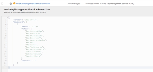 In the secondary account (and more if needed), a role like arn:aws:iam::222222222222:role/AllowWSMAccess will be edited and an AWS Managed Policy called “AWSKeyManagementServicePowerUser” will be added: