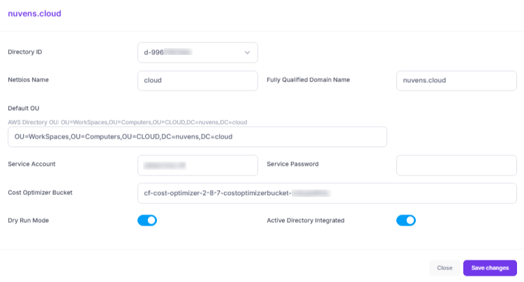 5. **Cost Optimizer S3 Bucket:** Defines the S3 bucket used to store reports and data generated by the WorkSpaces Cost Optimizer integration.