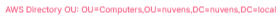 3. **Default Organizational Unit (OU):** Specifies the target OU where computer objects will be created, ensuring correct Group Policy application and organisational structure. This is pre populated by WSM and if it does not match the OU configured in AWS it will show up red